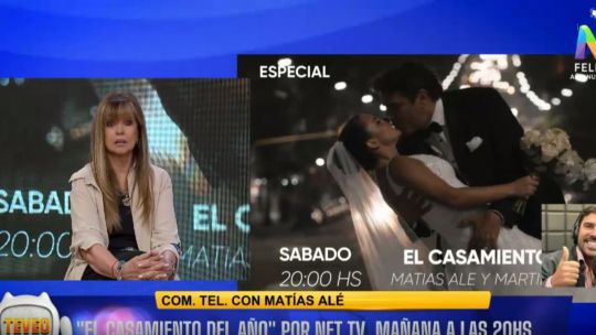 Posteriormente, reveló cómo surgió la posibilidad de que se transmita por la pantalla de NET TV: “Le conté hace un tiempo a Seba Beltrami (gerente de NET), me dijo que había que pasar por NET, se terminó de editar, volvimos de la luna de miel y estaban esperando nuestra vuelta para pasar ‘El casamiento del año’”.