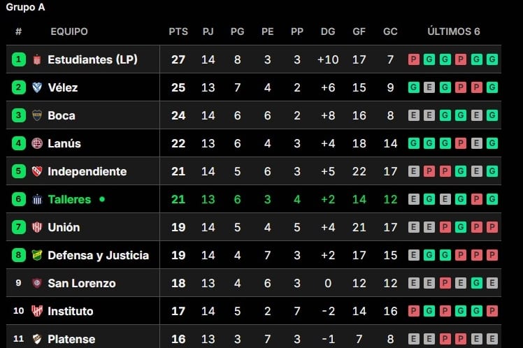 En el mismo grupo, Estudiantes (LP) y Vélez Sarsfield ya habían asegurado su pase en la fecha anterior. Por debajo de ellos, Lanús, Independiente, Talleres, Unión y Defensa y Justicia aún deben definir su clasificación en las dos jornadas restantes.